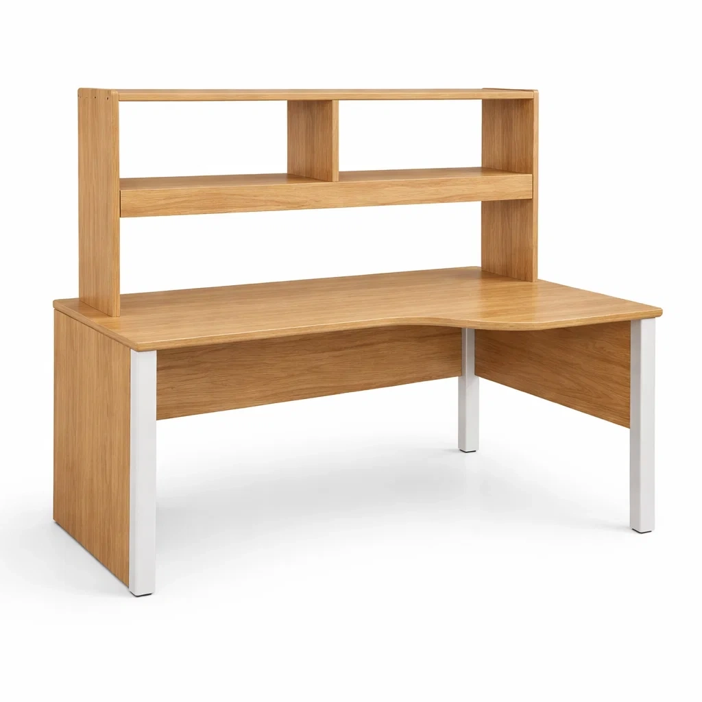 Bureau d'angle en mdf chêne clair avec étagère intégrée