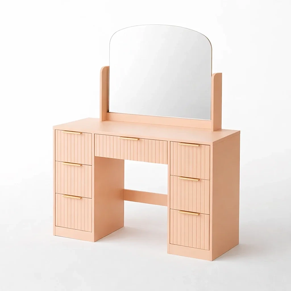Coiffeuse en mdf avec miroir en verre trempé et tiroirs pêche