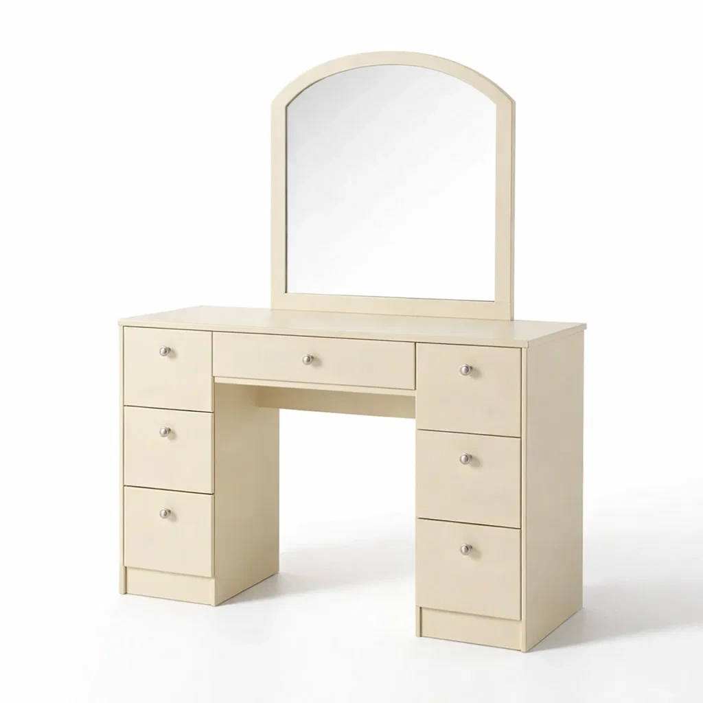 Coiffeuse rectangulaire en bois avec miroir et tiroirs crème
