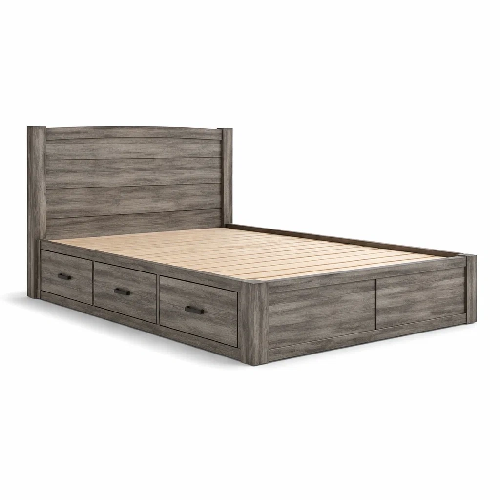 Lit avec rangement plateforme en bois avec tête de lit rembourrée et tiroirs