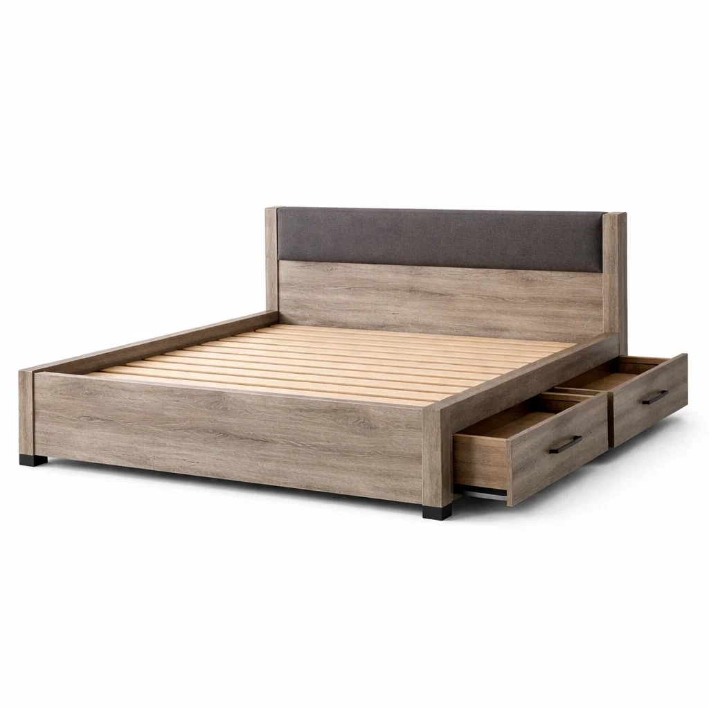 Lit avec rangement double en chêne avec tiroirs et tête rembourrée 200x160x110 cm