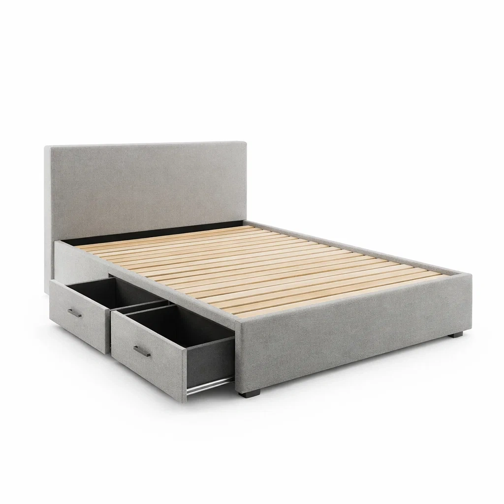 Lit avec rangement double en tissu polyester gris avec tiroirs