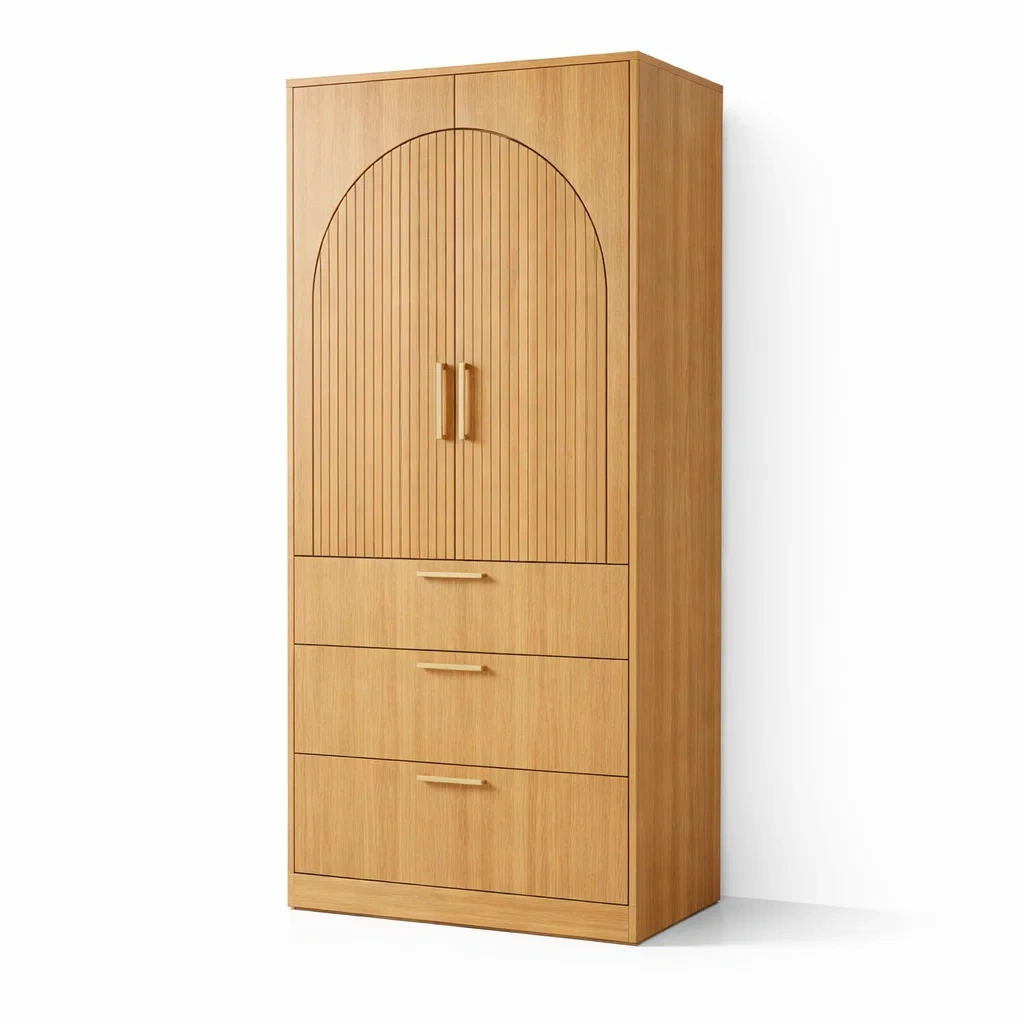 Caractéristiques : 2 portes arquées, 3 tiroirs, étagères réglables à l'intérieur.